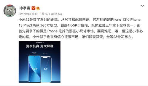 小米12的爆料真的是让人兴奋不已。无论是外观设计、性能配置、摄影功能,还是续航能力和系统优化,小米12都展现出了旗舰手机的实力。如果你是一个对手机有着极高要求的用户,那么小米12绝对值得你期待!赶紧关注一下小米的官方消息,说不定小米12的正式发布就在眼前呢!